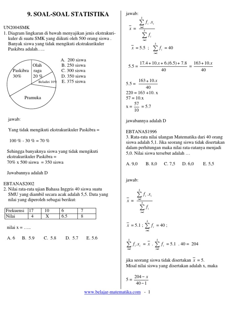 Soal statistika smp kelas 9 dengan adanya soal statistika ini admin berharap bisa membantu adik adik kelas 9 sekolah menengah pertama smp sltp mts yang sedang mencari referensi untuk belajar.