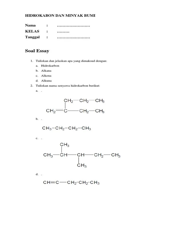 May 6, 2019 | author: Bank soal kimia kelas x hidrokarbon dan minyak bumi by unknown 24 feb . Minyak bumi merupakan campuran dari berbagai senyawa penyusun . Rangkuman materi disertai 30 contoh soal hidrokarbon kelas 11 dan jawaban berikut video pembelajaran dan latihan soal. Hidrokarbon adalah senyawa organik yang tersusun dari atom karbon dan.